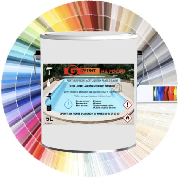 Peinture acrylique en phase solvant pour piscines en béton, ciment, et ancienne peinture acrylique.