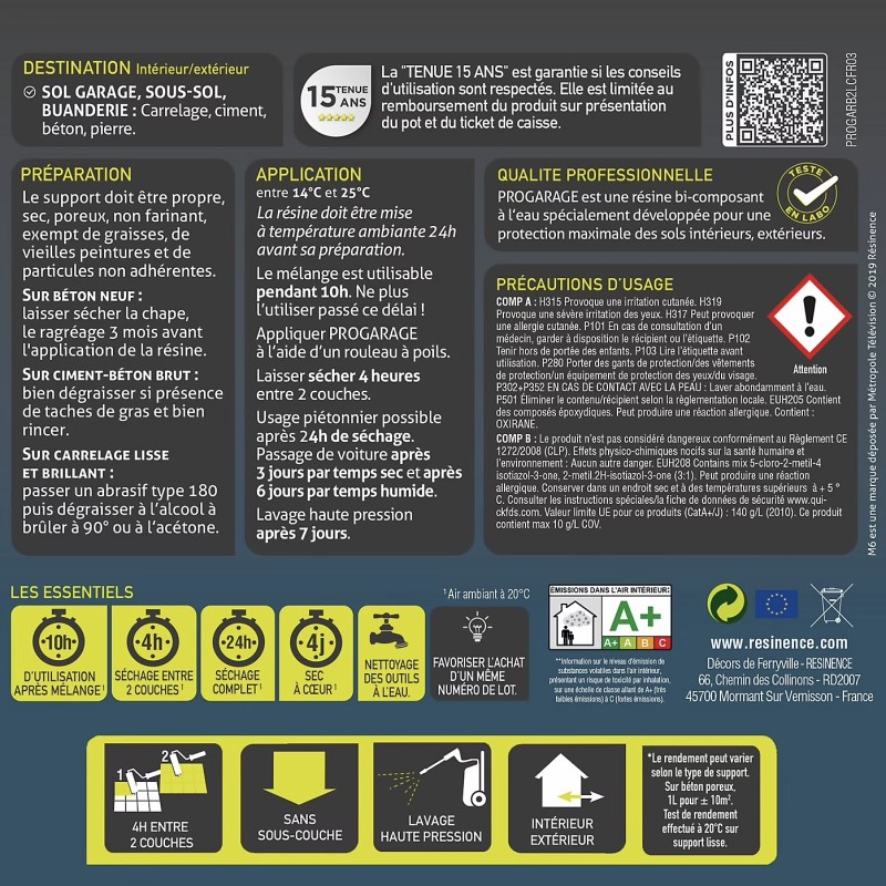 ProGarage est une résine colorée bi-composante époxy à l’eau qui permet de réaliser votre rénovation en une journée.
