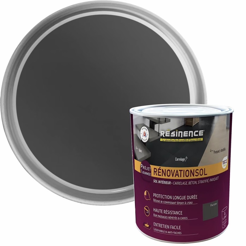 Rénovation Sol couleur GRAPHITE carrelage, beton, parquet bois 2L Resinence
