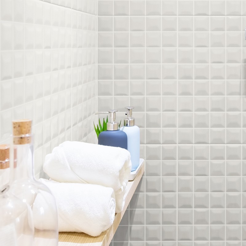 Conseillé sur les plans de travail, crédences et murs carrelés en zone humide.