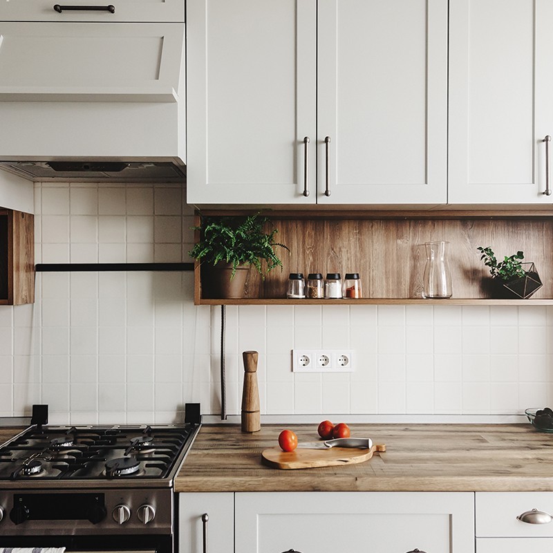 Conseillé sur les plans de travail, crédences et murs carrelés en zone humide.