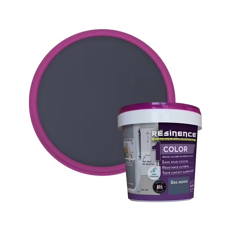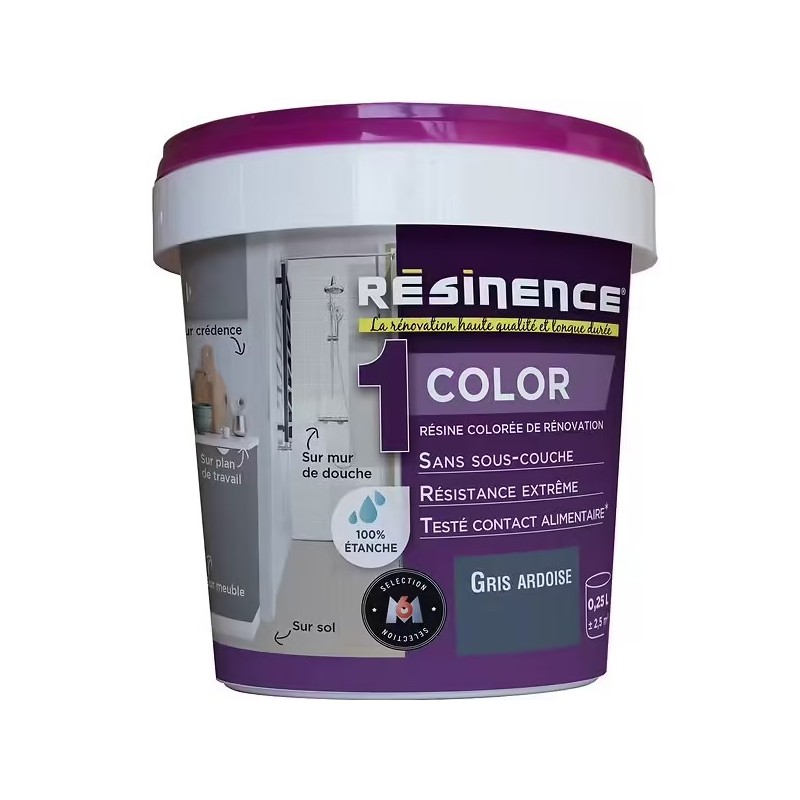 Après séchage complet de Color, appliquez 2 couches de Résinence Finition de l'aspect de votre choix pour rendre le support 100% étanche et ultra résistant.