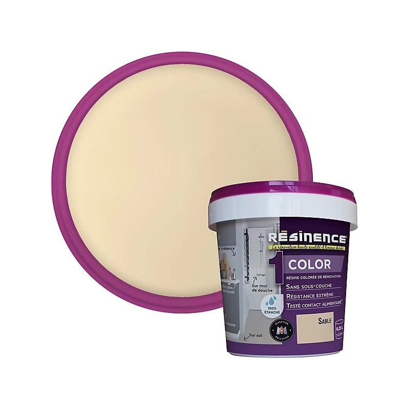 Après séchage complet de Color, appliquez 2 couches de Résinence Finition de l'aspect de votre choix pour rendre le support 100% étanche et ultra résistant.